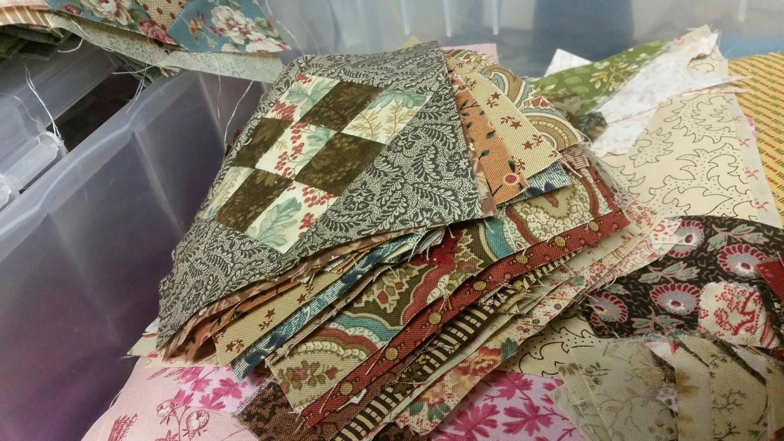 I found pieces of blocks left over from projects, and I sewed them into blocks and put them in the orphan box. Soon I will go through that too, and make a scrappy album, or backing, or donate the whole lot to someone who wants them.